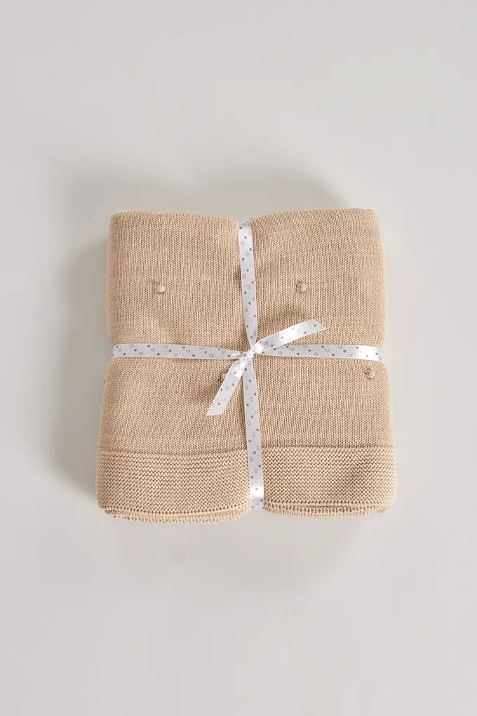 Envolta em suavidade, esta manta de malha em algodão é perfeita para aconchegar o bebé nos dias mais frescos. O padrão de pompons confere-lhe um toque delicado e intemporal, ideal para passeios, sestas ou momentos de colo. Uma peça versátil e acolhedora para o enxoval do bebé.