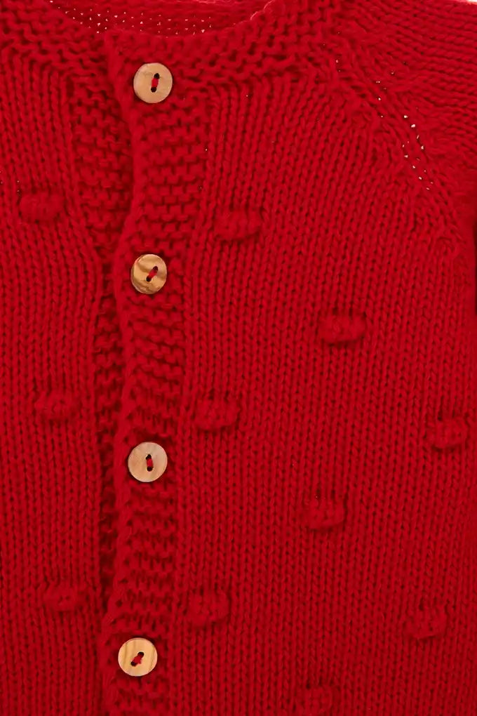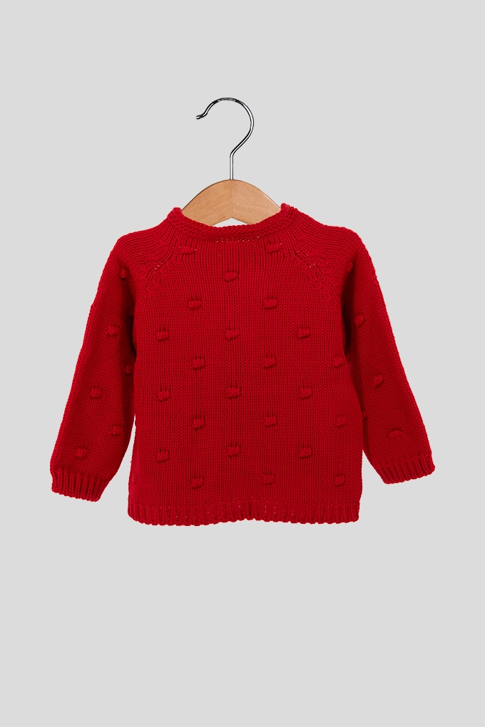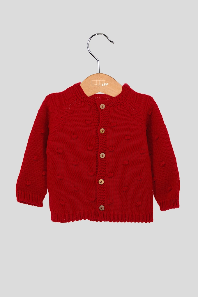 Confeccionado em tecido de malha suave, este casaco tem um padrão divertido de bolinhas em relevo e fecho frontal com botões. Um toque clássico com charme extra, ideal para os momentos de colo e para completar o guarda-roupa do bebé.