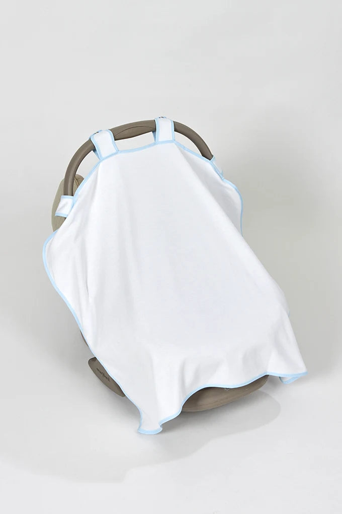Fralda de cobertura em algodão para cadeira auto do grupo 0. Com fecho de mola para fácil ajuste à estrutura da pega. Suave, respirável e ideal para proteger do sol e vento durante os passeios.